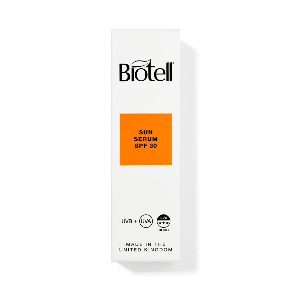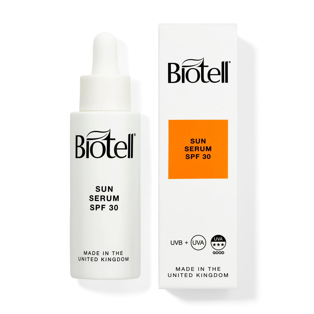 Protect your skin daily with Biotell Sun Serum SPF 30. Lightweight, broad spectrum UVA/UVB defence with Vitamin E. Matte finish. Non-greasy. UK-made.
